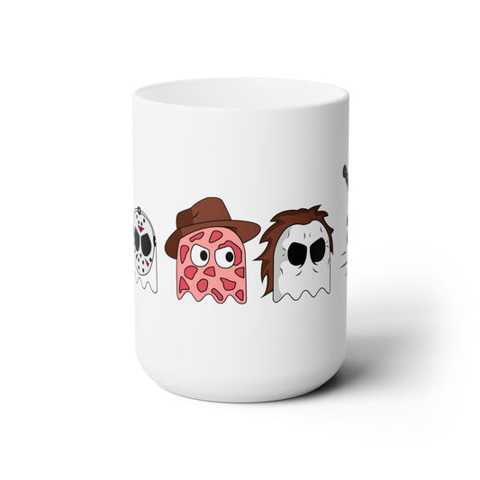 Spooky Season Halloween 2024 Retro Pac-Man Meets Halloween Horror Movie Character Coffee Mug Halloween Ghost Face, Jason Vorhees, Freddy Krueger, Michael Myers Scream, Friday the 13th, Nightmare on Elm Street, Halloween 2024