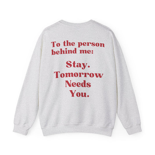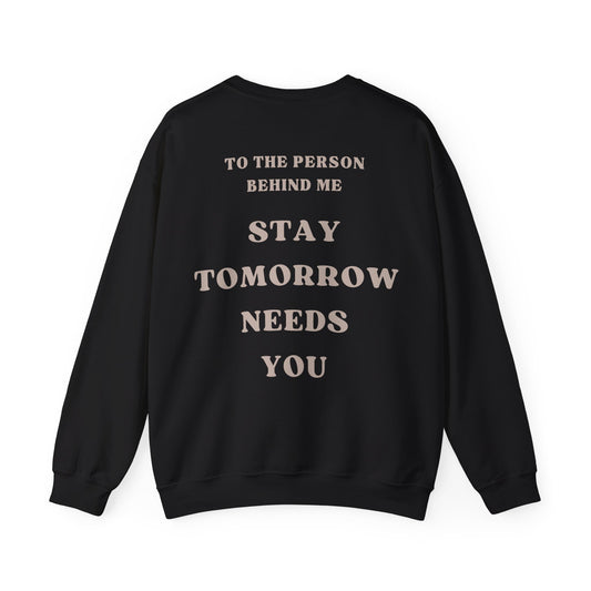 To the Person Behind Me: Stay Tomorrow Needs You Suicide Prevention Mental Health Awareness Crewneck Sweatshirt Gift