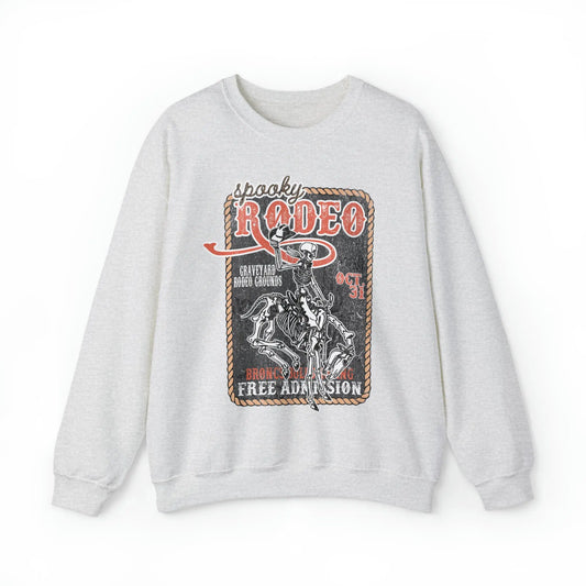 Vintage Halloween Rodeo Skeleton Cowboy Poster Sweatshirt - Western Spooky Skeleton